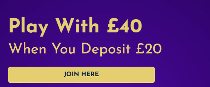New Customers Only. Min dep £20 (Paypal & Paysafe exc). Max Bonus £20, Wager Requirement 10x & Max win £1,000. On selected games.T&Cs apply.